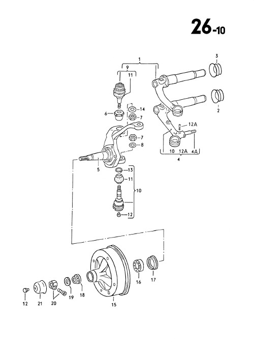 Original Achsschenkel rechts, gebraucht Sie bekommen den abgebildeten Achsschenkel geliefert. Bildtafel 26-10, Pos. 5 VW-Nummer 181 405 312 A Preis 150,- € |